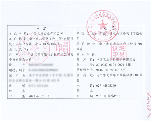 2021年8月21日,顶博电力与广西北投实业有限公司成功签订一台120KW
