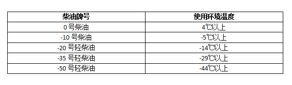 因此,用户在购买柴油发电机组燃油时一定不要贪图便宜,使用劣质柴油,会对机组造成不可逆转的损害。那么,用户该如何正确选择符合规定的柴油呢?顶博电力建议用户应按不同地区的环境温度来按如下表格进行选择。