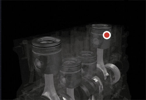 活塞:每根连杆顶部都连着一个活塞。活塞构成了燃烧室的底部,发动机工作时,活塞在汽缸内上下往复运动。